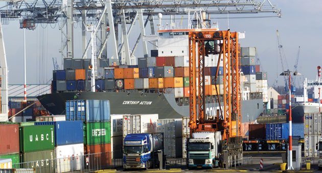 The container terminal at the Port of Rotterdam, which is one of the most important junctions of goods flows of the world, with an annual throughput of about 450 million tonnes is the gateway to the European market of more than 350 million consumers. (Image Corbis)