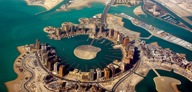 An aerial view of The Pearl-Qatar, located in Doha. This real estate development many see as created to compete with the Palm Jumeirah in Dubai. (Image Corbis)